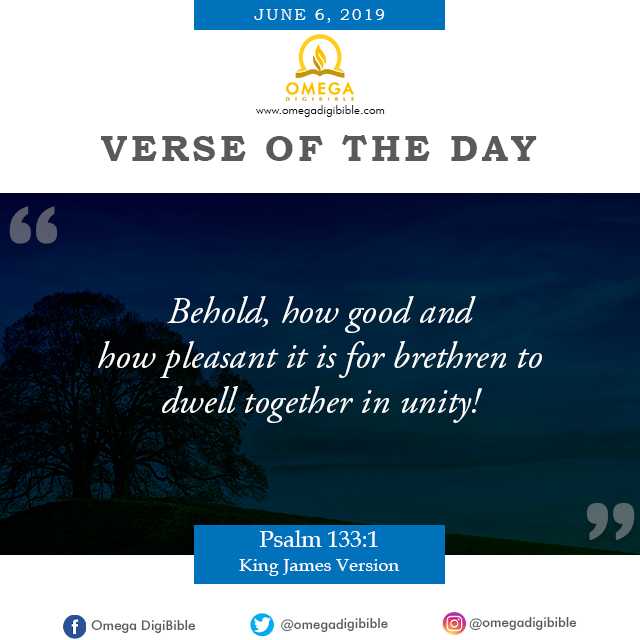 Omega Digibible On Twitter Verse Of The Day June 6 2019 Behold How Good And How Pleasant It Is For Brethren To Dwell Together In Unity Psalm 133 1 King James Version Check